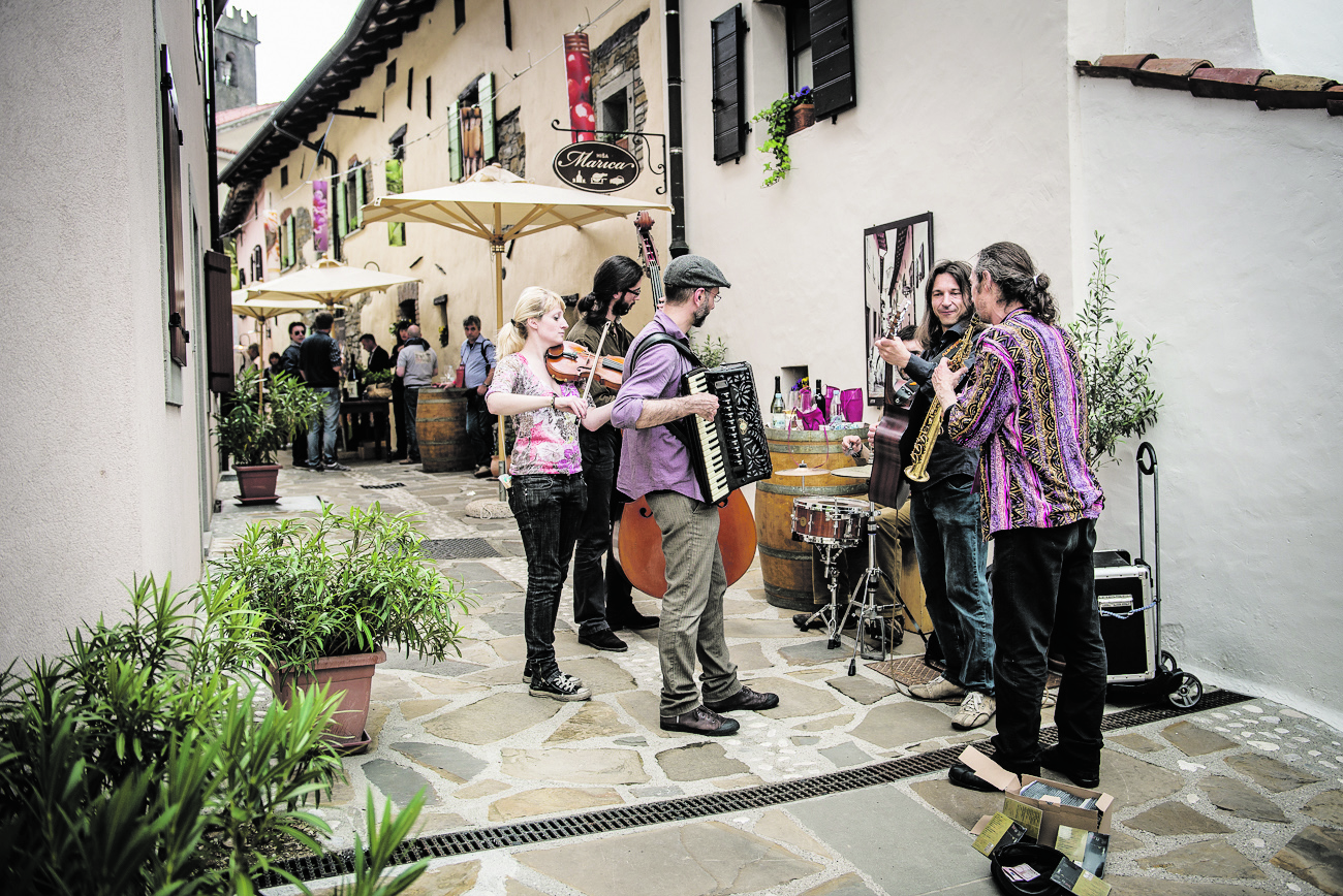 Šmartno, das ist ein kleines Dorf auf einem der vielen malerischen Hügeln der slowenischen Brda (dem Äquivalent zum italienischen Collio) mit mittelalterlichem Charme und romantischen Straßen und Plätzen innerhalb der historischen Befestigungsmauer. Hier präsentieren sich alljährlich an einem Wochenende im April die besten Winzer der Region auf einem kleinen, aber umso feineren Weinfest. Die Weine sind dank des Klimas und Terrains wahrlich ausgezeichnet, voll im Geschmack und überzeugen sowohl rot als auch weiß. Insbesondere die Orange-Weine von Janko Štekar (www.kmetijastekar.si) bleiben in bester Erinnerung. Kulinarisch begleitet werden die Winzer von den besten Restaurants der Region, die saisonale und traditionelle Gerichte direkt vor den Gästen zubereiten. Das größte önogastronomische Ereignis der Region ist keineswegs überlaufen, sondern ein entspanntes Fest mit über das Dorf verstreuten Holzständen, an denen man sich ungezwungen und immer wieder zum Verkosten der Produkte einfinden kann. Musiker ziehen durch die Gassen und unterhalten die Gäste auf so unaufdringliche Art, wie man es sich von so manch heimischem Winzertreffen erhoffen würde.