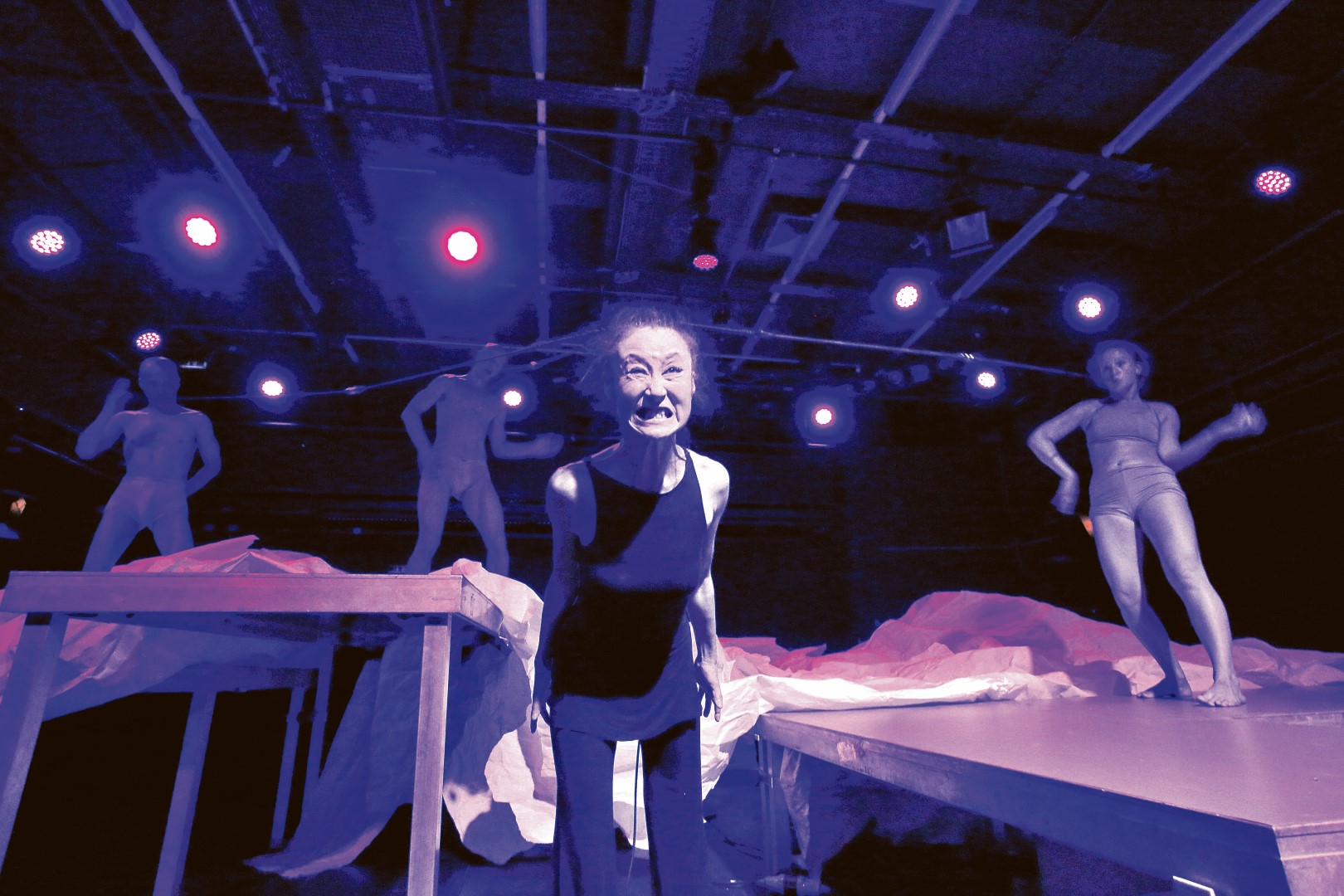 Die internationale Produktion „Resonant Complex“ ist eine Art Abrechnung mit der digitalen Flut. Deren Auswüchse scheinen durch Gehirnwindungen zu kriechen, besetzen Körper, formen sie, quälen sie, verfremden sie – und erinnern an sie.