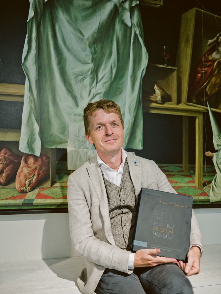 Er ist Kunstwissenschaftler, Kurator und Leiter einer der spitzfindigsten Kulturinstitutionen der Steiermark. Vor wenigen Monaten erschien sein dreibändiges Werk „Gott hat kein Museum“. Es ist Buch und virtueller Museumsbetrieb in einem. Darüber hinaus gilt es als epochales Ergebnis einer 20 Jahre andauernden Auseinandersetzung mit Gegenwartskunst und Religion im Kulturzentrum bei den Minoriten.