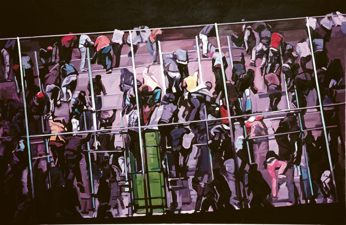 Volle Flüchtlingsboote oder alltäglich wirkende Menschenmengen. Die Malerei von Anton Petz verleiht bekannten Bildmotiven eine neuartige, eindringliche Präsenz. Anlässlich seiner aktuellen Ausstellung im Quartier Leech bat „Achtzig“ den Künstler zum Interview.