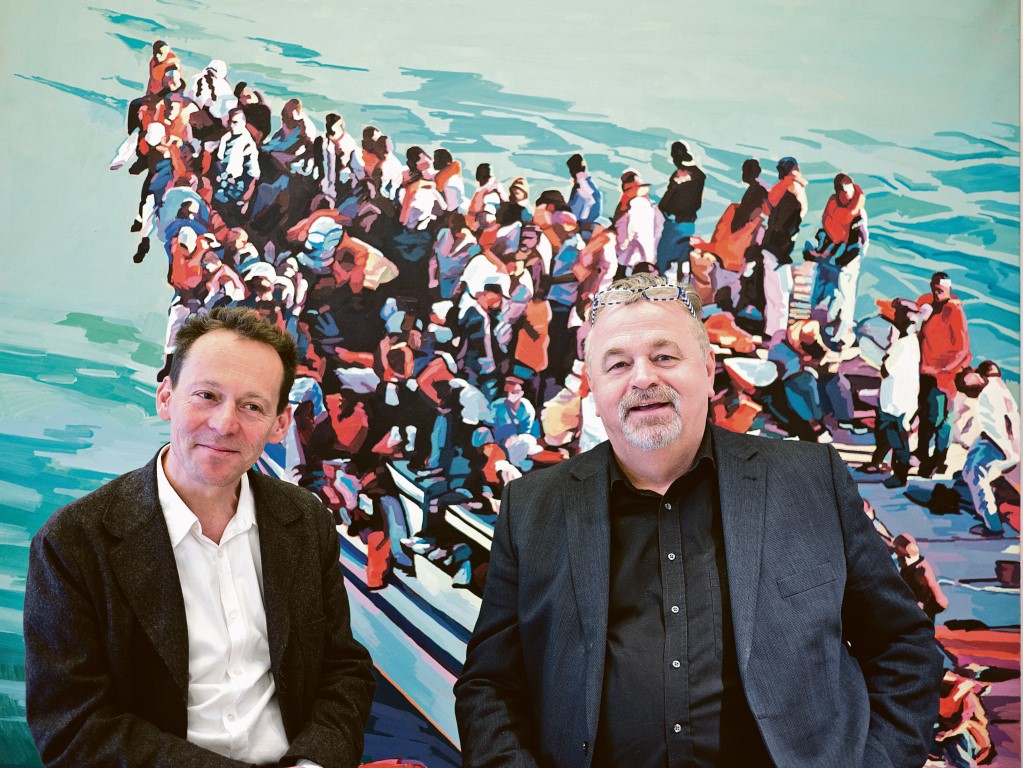 Ich sehe mich als Maler, der sich mit Medien beschäftigt. Ich hinterfrage die Verwendung von Bildern. Fotos aus den Nachrichten sind ja zeitlich begrenzt, sie tauchen kurz auf und sind leicht wieder aus dem Blick zu bekommen. Ein Flüchtlingsschiff hingegen, das man aus dem Fernsehen oder aus Zeitungen kennt, in ein klassisches Medium wie die Malerei zu transferieren, führt dazu, dass das Bild an Bedeutung gewinnt. Ein gemaltes Bild ist ein Objekt, das an der Wand hängt und eine permanente optische Präsenz entfaltet.