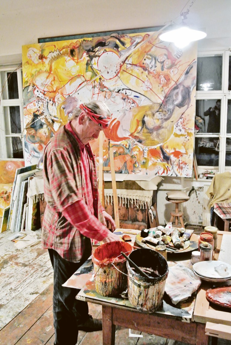 Mir ist aufgefallen, dass ich von Jahr zu Jahr immer intensiver gezeichnet und gemalt habe. So viel, wie im letzten Jahr, hab’ ich überhaupt noch nie gearbeitet. Heute stehe ich oft schon um vier Uhr in der Früh im Atelier vor der Leinwand. Als ich mit dem kontinuierlichen Zeichnen begonnen habe, als 35-Jähriger in Arnfels, habe ich in der Regel bis zum frühen Nachmittag geschlafen. Damals zeichnete ich die ganze Nacht und erlebte den Sonnenaufgang Tag für Tag im Atelier. Im Sommer. Winters, als Tier, das in mir ist, schlief ich viel.