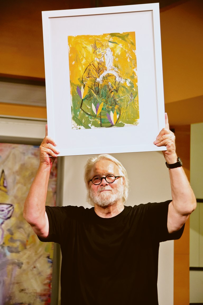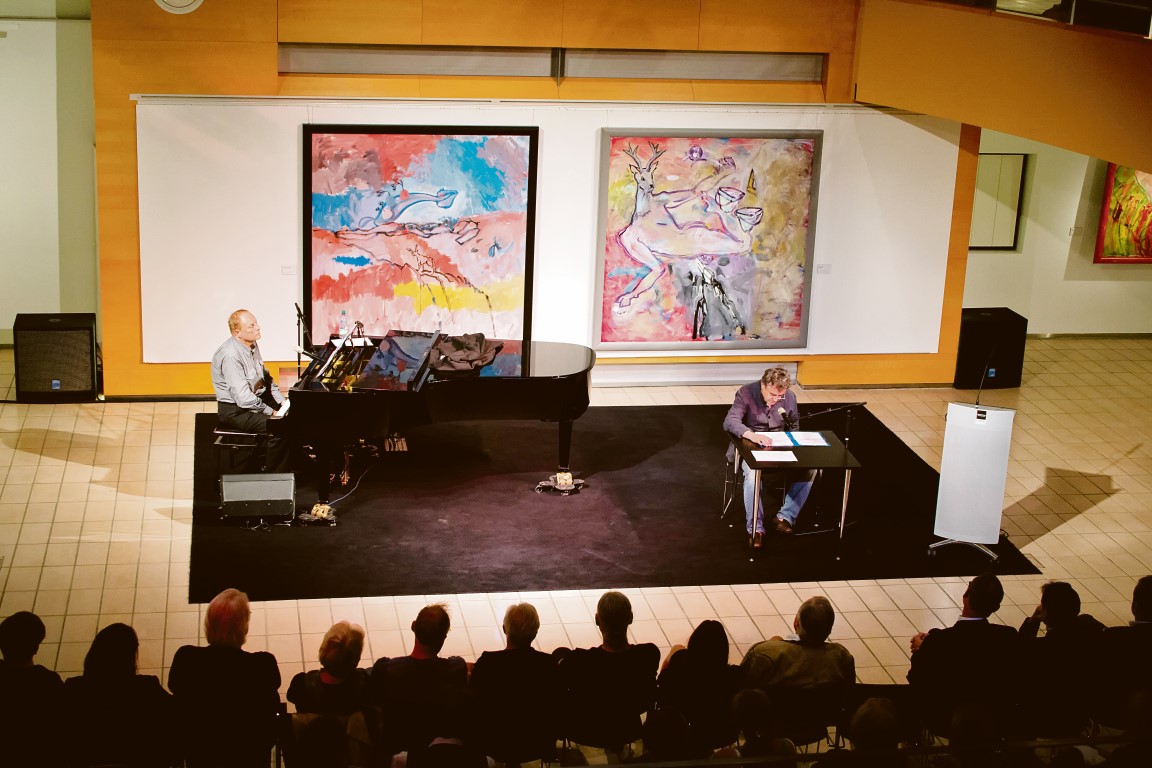 In der Vergangenheit habe ich viele Ausstellungen von Christian Ludwig Attersee gesehen, aber die Summe der 41 Bilder im Greith-Haus ist etwas Besonderes. Die Ausstellung Sternenfleisch gibt einen sehr guten Einblick in das Attersee-Universum. Ich finde auch die Gedichte gut, die im Katalog abgedruckt sind. Die Vernissage war ein Erlebnis, Attersee hat seine Lieder gesungen und selbst am Klavier begleitet, Bernd Jeschek hat die Gedichte von Christian rezitiert.