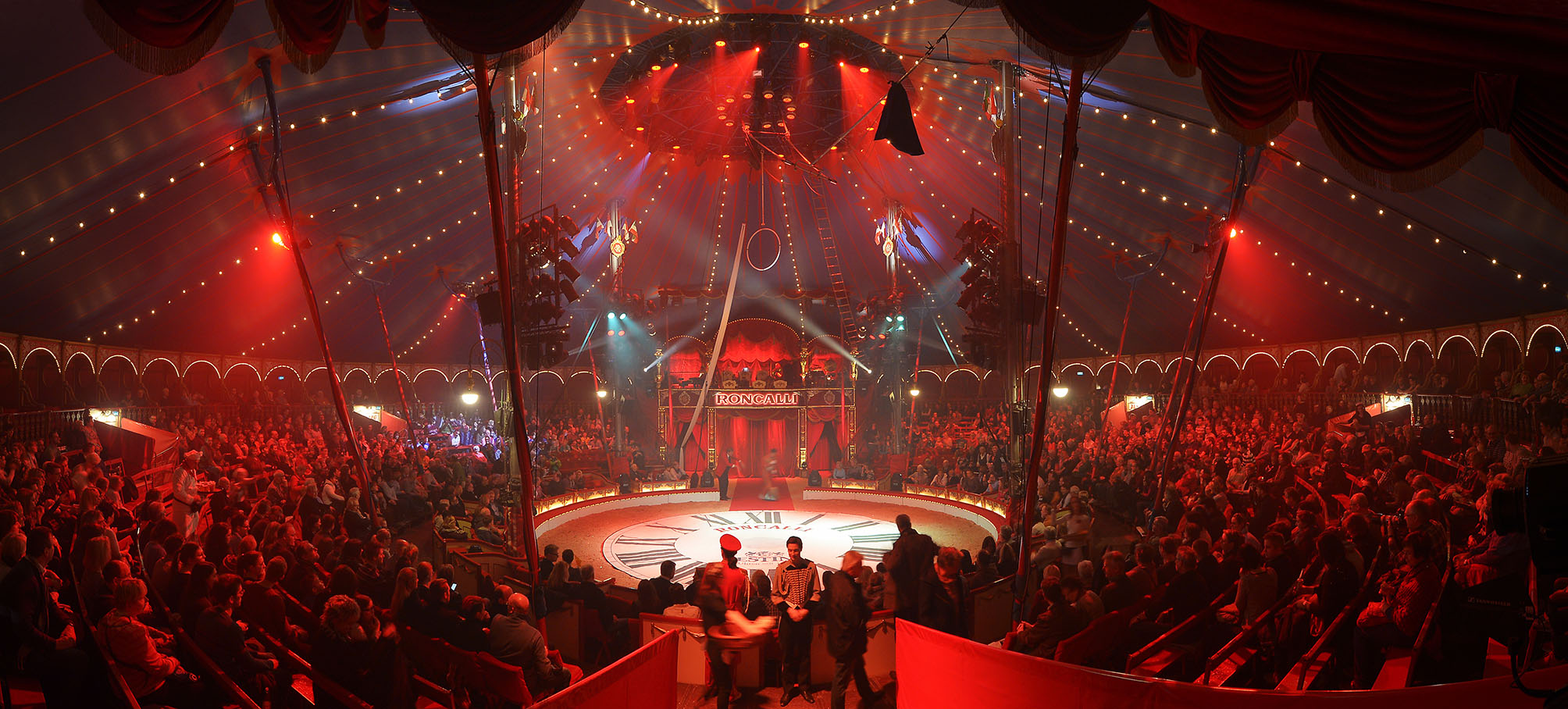 Es ist immer wieder ein optisches Wunder: Wenn die Dämmerung hereinbricht und die rund 10.000 Glühbirnen am und ums liebevoll Chapiteau genannte Zelt angehen, dann ist es wieder so weit – der Circus Roncalli ist in der Stadt! Wenn dann auch noch die Musik durch die Planen dringt, das tausendfache Lachen und der tosende Applaus, dann werden ansonsten leere Plätze für die Zeit des Gastspiels zu Zentren des Glücks und der Zusammenkunft.