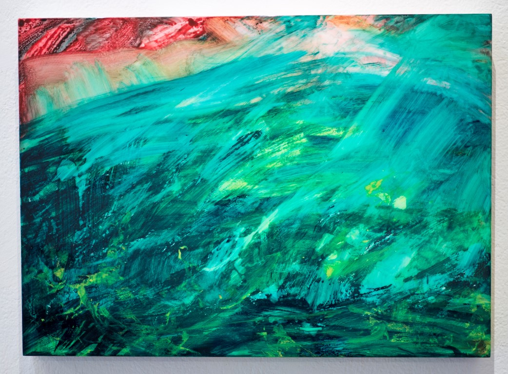 Die neue Serie beschäftigt sich mit seinem Farbenspiel. Doch das ist ein sehr persönlicher Zugang von mir. Bilder lösen gerne Erinnerungen aus. Wenn ich die Bilder heute betrachte, kommt mir eben dieser Edelstein in den Sinn, aber er war nicht die Inspiration dazu. Ich beginne neue Arbeiten nie mit einer fixen Idee, ich habe auch kein fertiges Konzept. Ich versuche bestimmte Dinge, und bei den Versuchen bleibt hin und wieder etwas bestehen, bei dem ich mir denke: Hier könnte man weiterarbeiten.