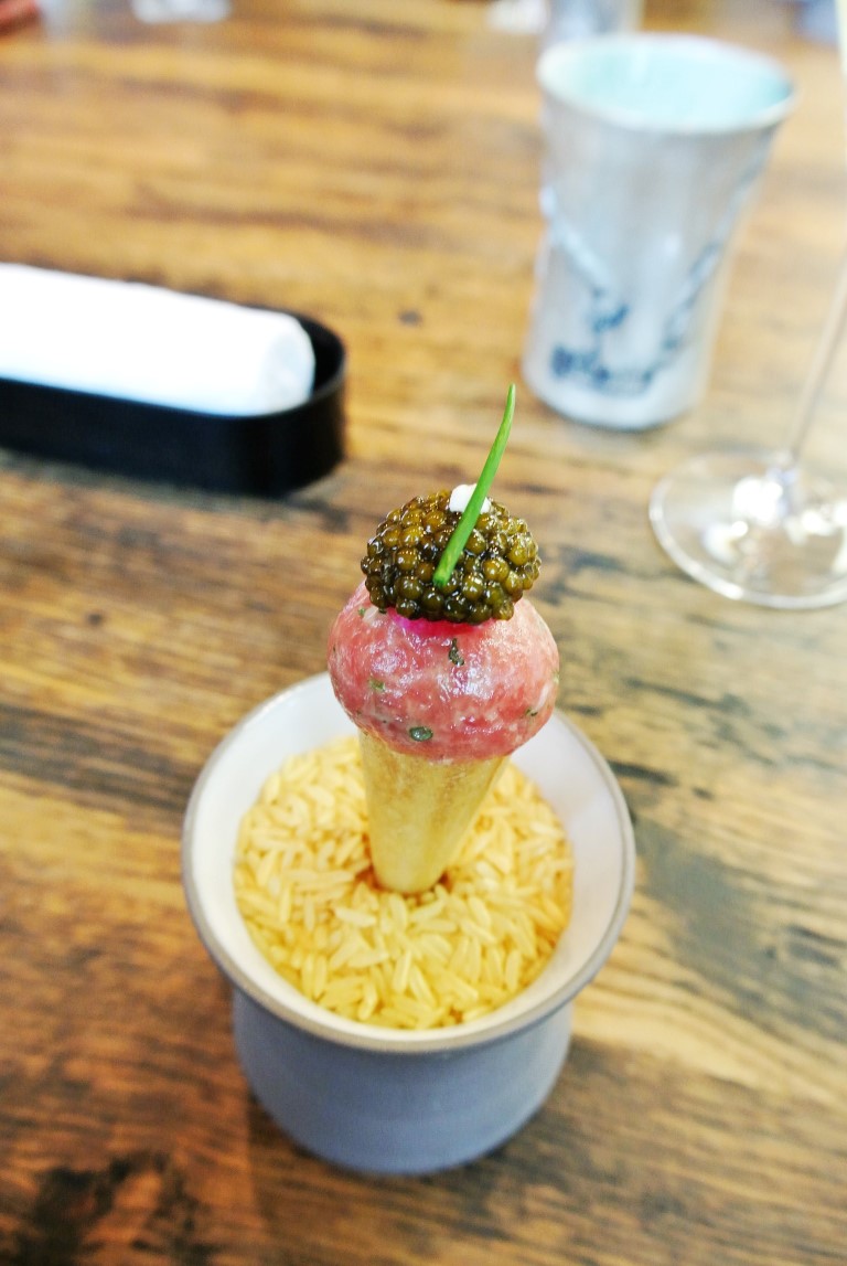 Schon die Grüße aus der Küche sind große Oper. Der Opener, das Cornet vom Bio-Ox mit Räucherfischcreme und Imperialkaviar ist ein erster sanfter, aber einprägsamer Ton, der hellhörig werden lässt.