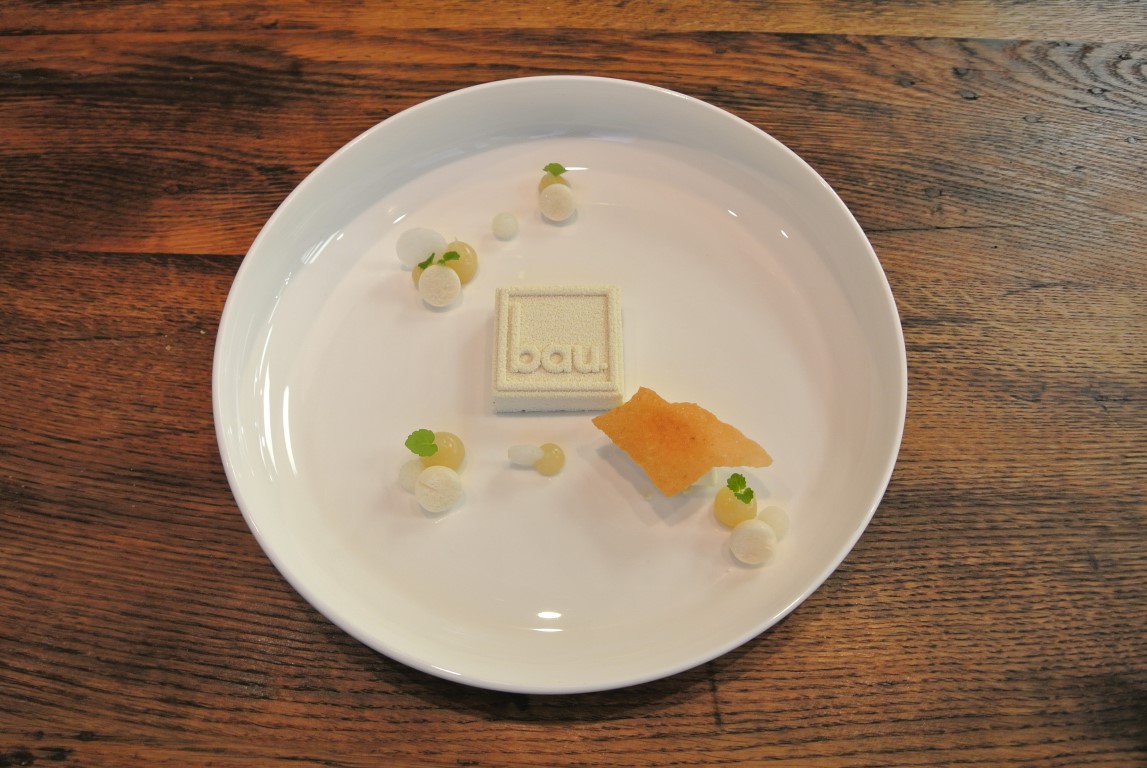 Heute spielen in Baus Küchenphilosophie Grundzutaten der klassischen französischen Küche wie Sahne, Crème Fraîche und Butter kaum noch eine gewichtige Rolle. Im Gegenteil, Bau verzichtet auf sie weitgehend. Auch Kohlenhydrate lässt er bewusst aus. Die Hauptrolle spielen nun Fisch und Meeresfrüchte, gefolgt von edlem Gemüse, Früchten, Kräutern und Gewürzen. „Ich liebe die klassische französische Küche nach wie vor und esse sie immer wieder einmal gerne. Doch es ist einfach ein tolles Gefühl, 10 Gänge zu essen und sich danach richtig gut zu fühlen. Aus diesem Grund versuche ich, meine Küche leicht und bekömmlich zu halten. Und das erreiche ich, indem ich auf tierische Fette weitgehend verzichte. Wir arbeiten auch nicht mehr mit Geflügel- oder Kalbsfond, anstelle dessen kochen wir mit Dashi-Brühe (Wasser, Algen und Bonitoflocken).“ Aus den Augen verloren hat er die französische Haute Cuisine dennoch nicht; wer seine Gerichte verkostet, spürt eine aufrichtige Verbundenheit zu Frankreich. So spielen auch Saucen weiterhin eine wichtige Rolle, nur anstelle von Üppigkeit ist es eine frische Leichtigkeit, die ihren Charakter ausmacht. „Wir haben etwa im Jahr 2005 begonnen, uns von der französischen Küche weg zu emanzipieren, die asiatische Linie war für mich die Chance auszubrechen.“ Baus Gerichte sind sehr komplex, aufgebaut wie hochfiligrane Kunstwerke, dennoch aber immer mit dem Ziel konzipiert, dem Gast leicht zugänglich zu bleiben. Es geht nicht darum, klassisch japanisch zu kochen oder der französischen Küche „treu“ zu bleiben. Bau bricht bewusst die Stile der einzelnen Philosophien, vermischt sie miteinander, holt das Beste aus ihnen heraus und kreiert damit eine komplett neue Geschmackswelt. Seine Küche ist leicht, zeitgemäß, modern und immer weltoffen. Doch eines ist sie nicht: radikal.