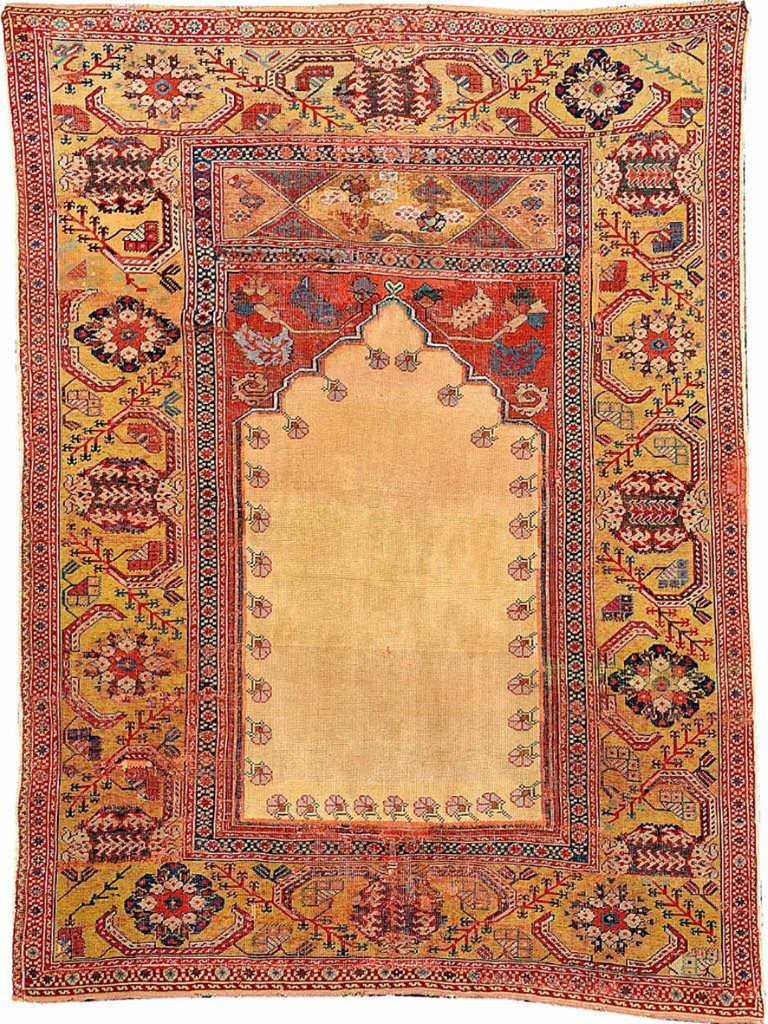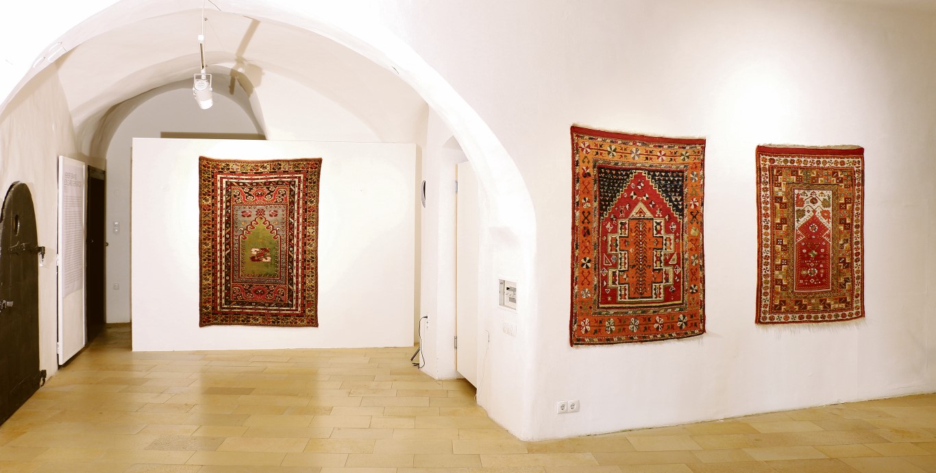 „Ein Gebetsteppich ist mehr als ein Gebrauchsgegenstand, er ist ein spiritueller Raum. Denn egal wo ein Nomade sein Zelt aufgeschlagen hat, der heilige Ort, an dem er Richtung Mekka betet, ist stets bei ihm“, erklärt Reinisch. Gezeigt werden Stücke aus einer Zeitspanne von mehr als 500 Jahren. Die antiken Gebetsteppiche stammen aus Anatolien, dem Kaukasus und Marokko. Eines der großen Highlights der Ausstellung ist ein um die 500 Jahre alter „Siebenbürger“, ein Knüpfteppich aus Anatolien, der in Rumänien entdeckt wurde. Wie ein türkischer Teppich vor gut 500 Jahren nach Siebenbürgen kommt? „Siebenbürgische Seefahrer und Händler kamen über das Schwarze Meer zurück in ihre Heimat. Als Zeichen ihrer Dankbarkeit an Gott, die Seefahrt überlebt zu haben, hängten sie wertvolle Teppiche in die jeweiligen Kirchen.“