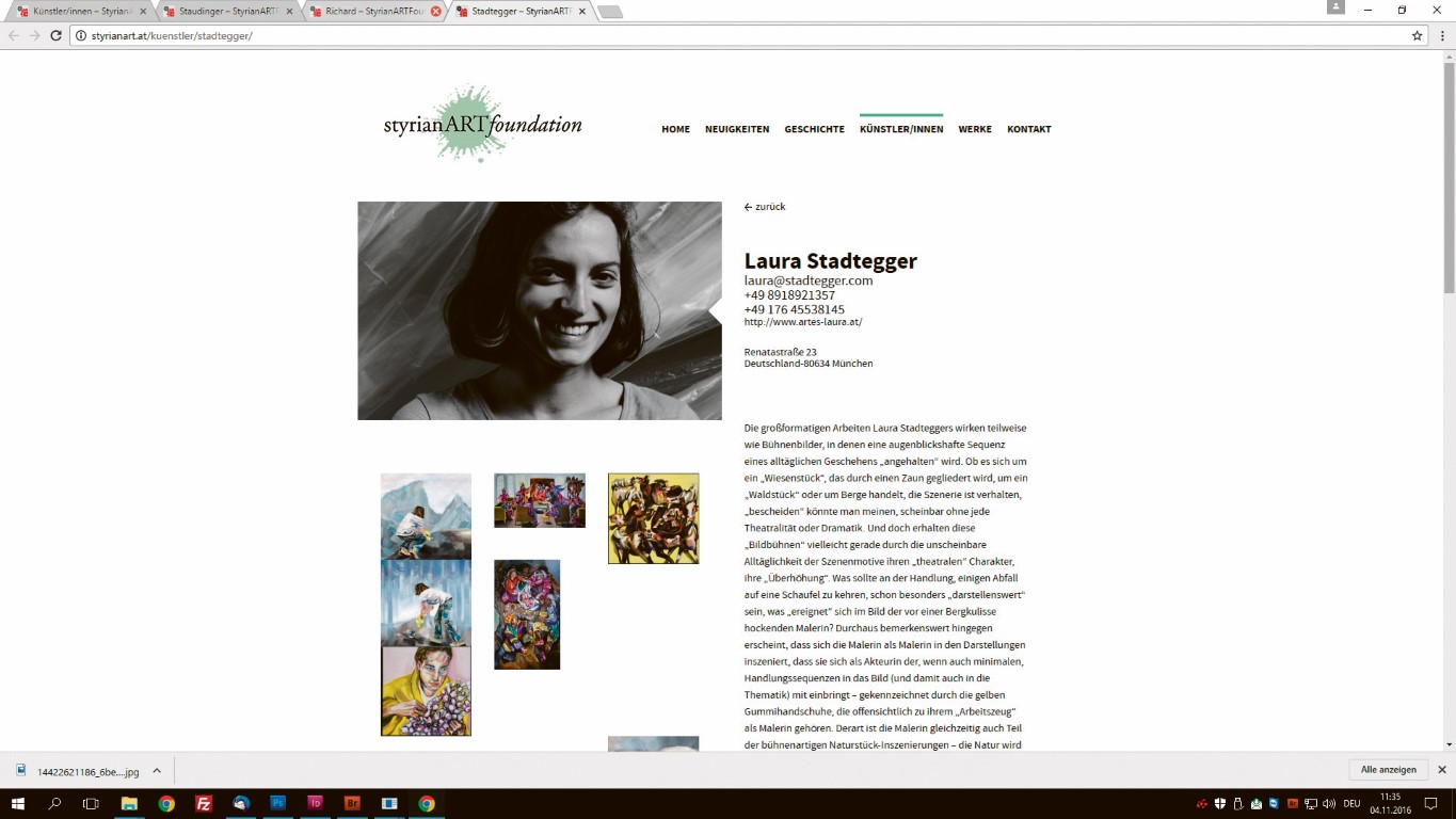 10 Jahre lang veranstaltete die styrianARTfoundation KünstlerInnen-Klausuren und trug damit maßgeblich zum Profil der steirischen Gegenwartskunst bei. 102 KünstlerInnen durchliefen diese Klausuren und sie alle sind nun auf einen Klick im virtuellen Showroom vertreten. Neben Werken und detaillierten Beschreibungen der Künstler finden sich auch aktuelle Hinweise auf nationale- und internationale Ausstellungen der ehemaligen Klausurteilnehmer. Die Seite bietet damit weltweit Zugriff auf geballtes steirisches Kunstschaffen und gibt den Protagonisten Stimme und Ausdruck und den Zugang zu einer breiten Öffentlichkeit.