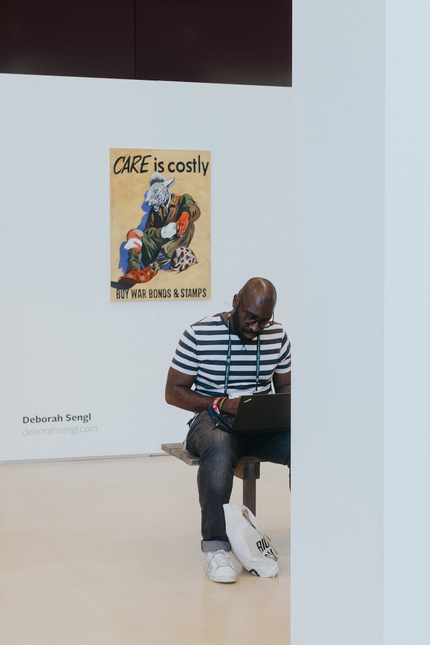 Im Vorjahr gab es die Premiere einer Festival-Galerie, organisiert und kuratiert vom freischaffenden Künstler Armin Pichler / meapi. Ein voller Erfolg. Und so gab es heuer die Fortsetzung der Schau mit zeitgenössischen Arbeiten. Mit dem Festival ist auch die Kunst am Festival gewachsen, und so zeigte Pichler heuer unter dem Titel „Oh please do“ sieben ausgewählte österreichische Positionen der bildenden Kunst: Malerei, Collage, Skulptur und Objekte. Auf rund 200 m2 war etwa die Wiener Ausnahmekünstlerin Deborah Sengl mit brandneuen Werke aus ihrem eben erst begonnenen Zyklus „Propaganda“ zu sehen.