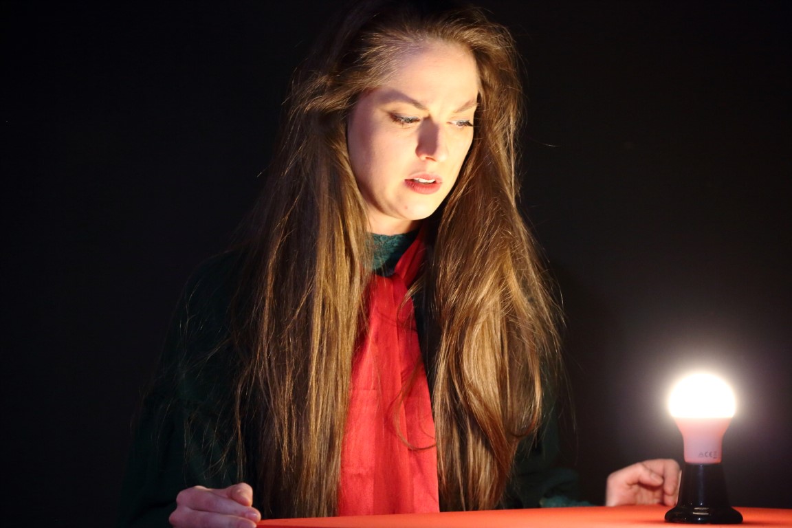 Die Inszenierung des Regisseurs Alfred Haidacher kommt mit einer Besetzung von lediglich fünf Darstellern aus. Die Hauptprotagonistin bleibt bei ihm, im Gegensatz zum Originaltext, namenlos. Für die Stimme der Masse reicht ihm anfangs nur eine Schauspielerin und ein Live-Echo. Später manifestiert sich aus diesem Echo die Gestalt des Namenlosen. Das Bühnenbild wird farblich einfach gehalten: Warnendes Rot dominiert auf schwarzem Hintergrund. Ein zentrales, drehbares Stufengebilde sorgt für Abwechslung zwischen den einzelnen Szenen. Teils surreale Traumbilder bilden den Kern des Stückes, da sie die Emotionen des Konflikts und dessen Ursprung anschaulich darstellen.