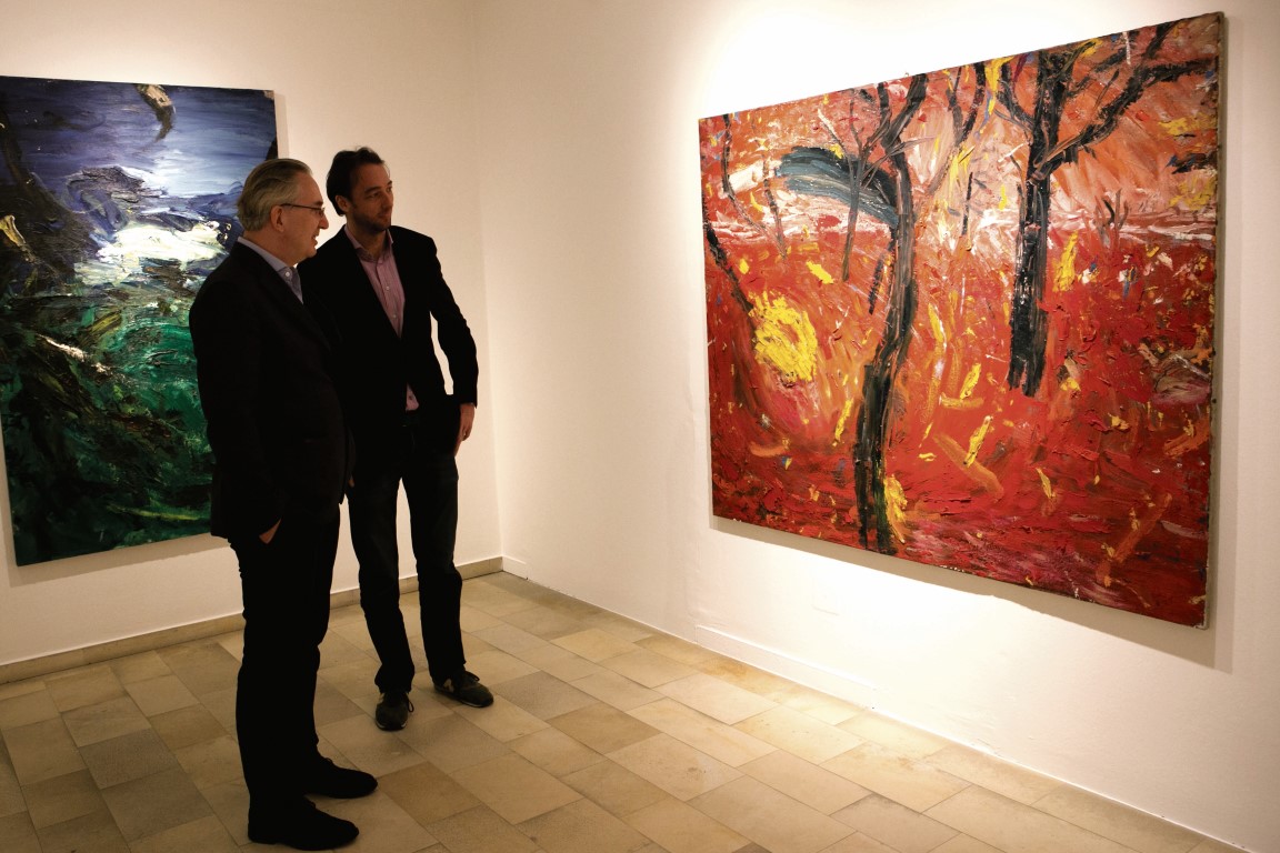 Unweit von Schwanberg, jenem Ort, an dem der Künstler aufgewachsen ist, bietet sich nun die Gelegenheit, ausgewählte Werke aus dem Besitz eines wahren Brandl-Liebhabers zu sehen. Ausgangspunkt der Schau in Groß St. Florian ist ein leuchtend rotes Aquarell, das der Kunstsammler Thomas Angermair in den 1990ern auf einer Charity-Auktion ersteigerte. Es war Angermairs „erster Brandl“, sozusagen die Initialzündung für seine bis heute anhaltende Faszination für das Werk des Künstlers. Nach intensiver Beschäftigung mit dem Œuvre war für Angermair bald klar, seine Kunstsammlung nur noch auf Herbert Brandl zu fokussieren – in den Farben, Techniken und Motiven, vor allem in seiner Vielfalt sei er für ihn der komplexeste Künstler. Heute besitzt der Wiener Rechtsanwalt nicht nur die weltgrößte Herbert-Brandl-Sammlung. Künstler und Sammler verbindet auch eine enge Freundschaft: „Die Begeisterung für die Kunst passt mit der Begeisterung für den Menschen zusammen. Das ist keine Selbstverständlichkeit.“