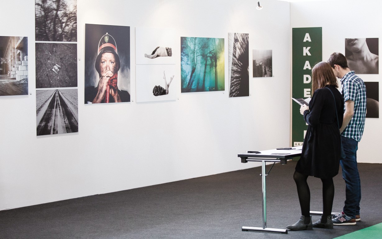 Inmitten des bunten Messetrubels wirkt die Halle D wie ein eigener Kosmos für sich. Der charmante Industrieflair der Rundbogenhalle aus dem Jahre 1964 spendet nicht nur ausreichend Tageslicht, sondern verleiht dem Kunstpavillon auch den passenden urbanen Anstrich. Auf einer kleinen Bühne spielen Jazzmusiker und ein großzügig angelegtes Café lädt zum Verweilen, Besprechen und Entspannen ein.