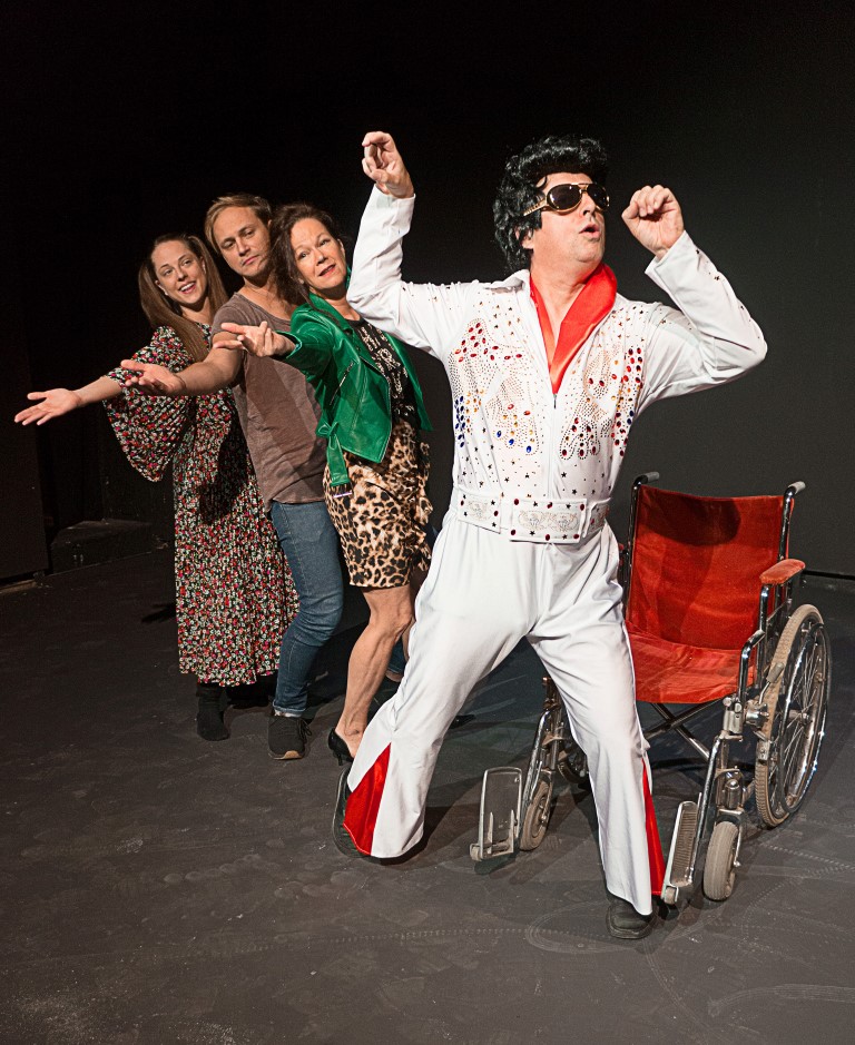 Freilich nähert sich der Dramatiker Hall der großen Koryphäe Elvis keineswegs devot, sondern durchaus respektlos. Seine Fresssucht, welcher der „King of Rock‘n‘Roll“ schlussendlich auch erlag, sein freizügiger Umgang mit Alkohol und diversen Drogen spiegelt sich im Schicksal des 17-jährigen Teenagers Hermine wider. Sie ist durch die Liebe zum Essen – wie nicht anders zu erwarten – fett und kocht leidenschaftlich für ihren Vater, einen ehemaligen Elvis-Imitator, der nach einem Unfall unfähig zu kommunizieren im Rollstuhl sitzt. Als Reaktion darauf versucht sich Hermines Mutter mit bulimischem Verhalten über die umfassende Misere hinwegzutrösten und sucht Halt bei zahlreichen jüngeren Liebhabern. Dieses Chaos gipfelt darin, dass nun einer dieser Hausfreunde tatsächlich bei der Familie einzieht, ausgerechnet der einfältige Leo. Mit seiner juvenilen Attraktivität bringt Lee Hall eine weitere Presley’sche Facette mit ins Spiel und so kommt nun, was kommen muss: Auch Tochter Hermine verliebt sich in den etwas stupiden, aber durchaus feschen jungen Mann. Dass diese Konstellation zu keinem guten Ende führen kann, dürfte allen klar sein, auch wenn der auftretende King Elvis immer dafür sorgt, dass auf Moral und Anstand nicht ganz vergessen wird.