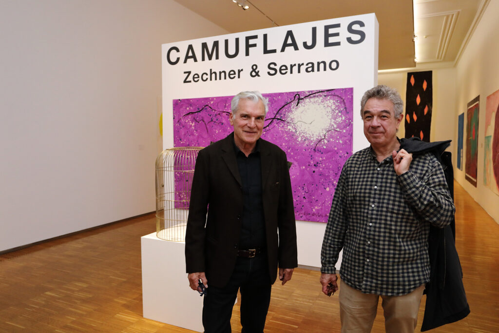 Die von Günther Holler-Schuster kuratierte Ausstellung CAMUFLAJES in der Neuen Galerie Graz ist ein Gemeinschaftsprojekt zweier Künstler an der Schnittstelle von Malerei und Literatur. Ausgangspunkt ist das Motiv der Tarnung – Camouflage – als Sinnbild einer Welt, in der Sichtbarkeit und Verbergen, Sprache und Bild, Krieg und Wahrnehmung ineinandergreifen. In einer Zeit globaler Konflikte verweben Zechner und Serrano visuelle und poetische Ausdrucksformen zu einer Installation, die sich als begehbares Gedicht verstehen lässt. Über mehrere Jahre hinweg haben der in Graz lebende Maler Johanes Zechner und der in Mexico City lebende Literat Pedro Serrano eine Distanz-Kollaboration entwickelt, die sich „fragend einer Welt zuwendet, in der Lebensräume als Kriegsschauplätze missbraucht werden und die Anzahl der Drohnen mehr interessiert als das Singen der Vögel“, so Zechner.