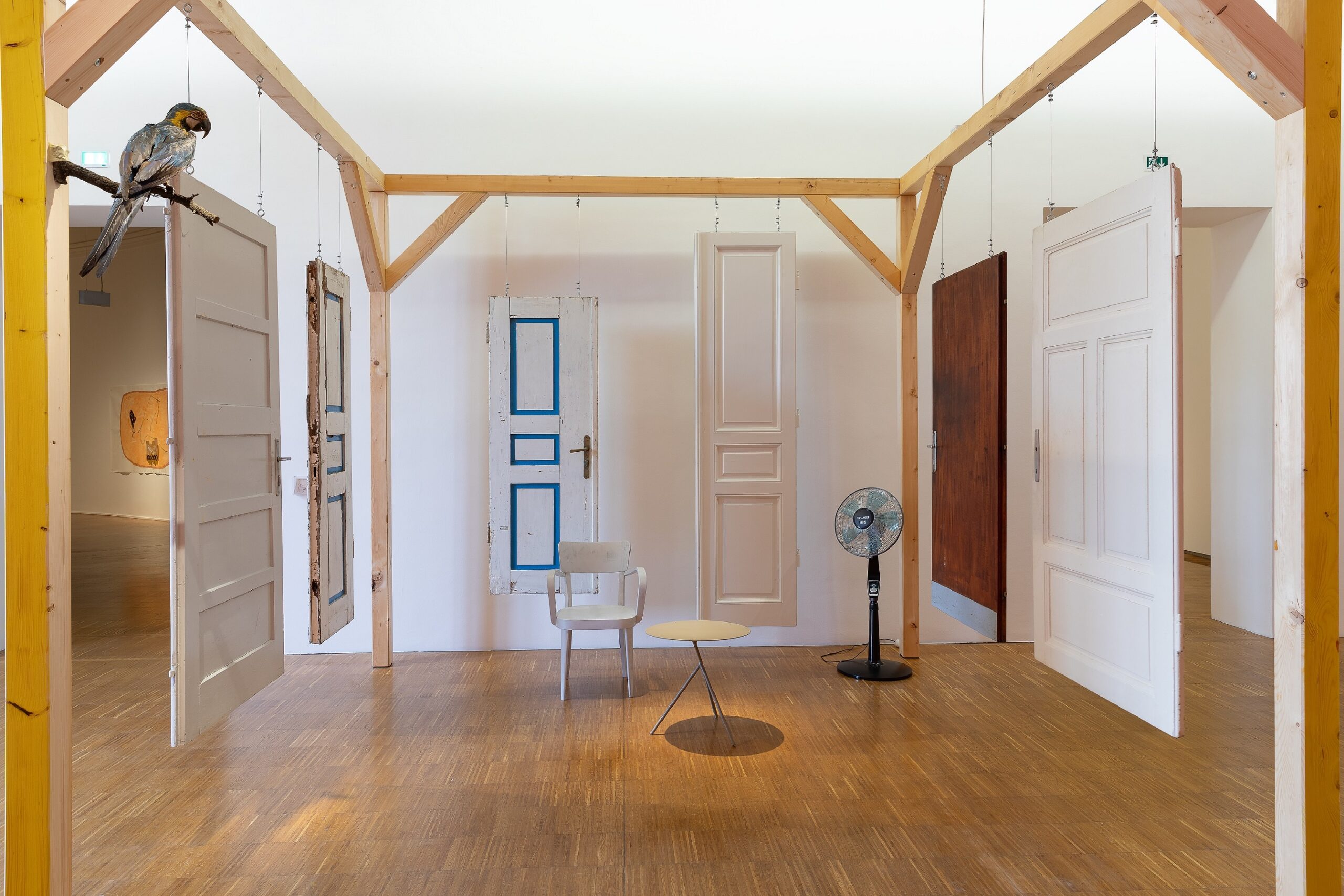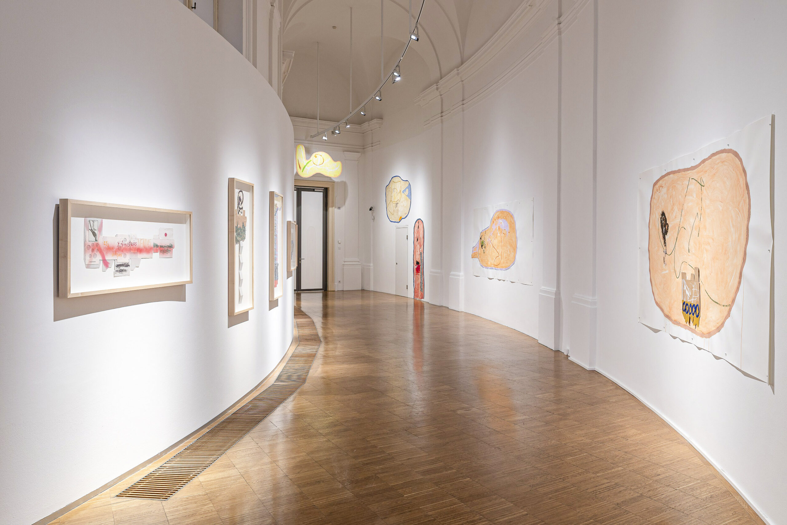 Für die Schau haben sie einen inhaltlichen Parcours geschaffen, der sich als eine einzige Installation ebenso lesen lässt wie als Summe von Einzelwerken. Das flexible, leichte Material des Papiers, der Collage und der Mobiles erzeugt den Eindruck einer Poesiemaschine. Der exotische Vogel bzw. der Papagei zieht sich durch die gesamte Ausstellung. Er ist sowohl Bote zwischen den Kulturen als auch Alter Ego der Künstler. Erinnerungsebenen – nahe, fern, damals, heute – fließen ineinander und lassen den ursprünglichen sehr konkreten Kontext – die Kriege in der Ukraine und in Gaza – viel größer und allgemeiner wahrnehmen.