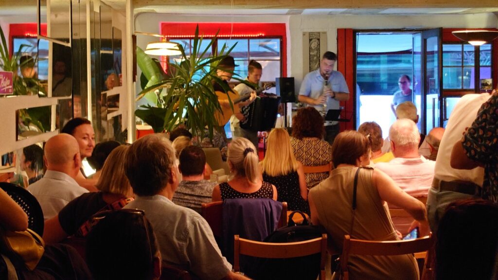 Was kompliziert und anstrengend klingt, fühlt sich im wohlig-warmen Kunst Klub Kräftner logisch, sinnlich und sinnvoll an. Igor Petković kann gut über Kunst reden, er kann aber auch gut handeln. Relikte aus dem Kurzwarengeschäft, das einst Knöpfe, Strickwaren, Stoffe, Nähgarn, aber auch Socken und Pyjamas verkaufte, dienen nun als Sitzmöbel, Regal oder Kunstrohstoff. Weitere Möbelstücke, angesiedelt zwischen Design-Juwel und Sperrmüll, werden auf Willhaben besorgt oder kommen aus dem circulART-Fundus von Max Gansberger, der ebenfalls im Vereinsvorstand ist. Was noch auffällt am Kunst Klub Kräftner: Anders als das Interieur sind die Kunstschaffenden oft sehr jung. „Ich habe immer auf Kanäle gesetzt, die die Jugend erreichen. Ich glaube, wir gebärden uns auch sehr frisch, jung – einfach offen. Wir sind nicht nur auf eine Sparte fixiert – wir sprechen viele an und haben super Kooperationen“, beschreibt Igor Petković die künstlerische Ausrichtung des Kräftner-Programms. So nutzen etwa Studierende der Kunstuniversität Graz (KUG) den Ort gerne für kammermusikartige Auftritte und schätzen das perfekt gestimmte Pianino, eine Dauerleihgabe der Sängerin Christina Gorke, die auch die aktuelle Ausstellung Good Luck kuratierte. Die feministische Indieband Planet Yoni trifft hier auf das etablierte Jazz-Ensemble Club Mineur. Comedy-Shooting-Star Sebastian Humi hostete seinen Queer Comedy Club erstmals in Graz. Klaus Lederwasch und Anna Lena Obermoser organisieren unterschiedliche Formate von Slam-Poesie. Experimentelle Sounds aus dem Hause Interpenetration sind ebenso zu hören wie Weltmusik, Pop und Dialektkunst. Immer wieder kommt Rainer Binder-Krieglstein zu den Konzerten, um sich Anregungen für seinen Jazz-Club im Café Wolf zu holen. Im oberen Stockwerk des Hauses gibt es eine Wohnung mit Platz für Artists-in-Residence oder für auftretende Künstlerinnen und Künstler. Getränke und Kunst haben keinen fixen Preis – es wird ein Wertschätzungsbeitrag erbeten. Wer nicht ganz genau weiß, wie viel ihm die Kunst wert ist, dem wird liebevoll nachgeholfen.