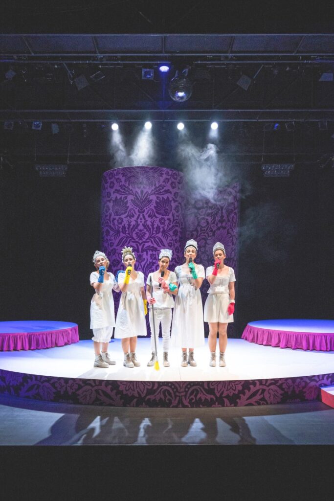 Unsere Bearbeitung spannt einen Bogen zwischen historischem Kontext und Gegenwart, wobei ein gewitzter Perspektivwechsel aktuelle Bezüge und einen Blick von außen ermöglicht: Erzählt wird die Geschichte von fünf Dienstmädchen, die alle in den Romanen vorkommen, aber natürlich dort nicht weiter beachtet werden. Bei uns kommen sie ans Mikro – und können endlich mit den gesellschaftlichen Zwängen und (patriarchalen) Strukturen abrechnen. Und das macht echt Spaß. Die Inszenierung hatte bereits in der letzten Spielzeit Premiere, pausiert jetzt und kommt im Jänner 2027 aufgrund der großen Nachfrage wieder auf den Spielplan.