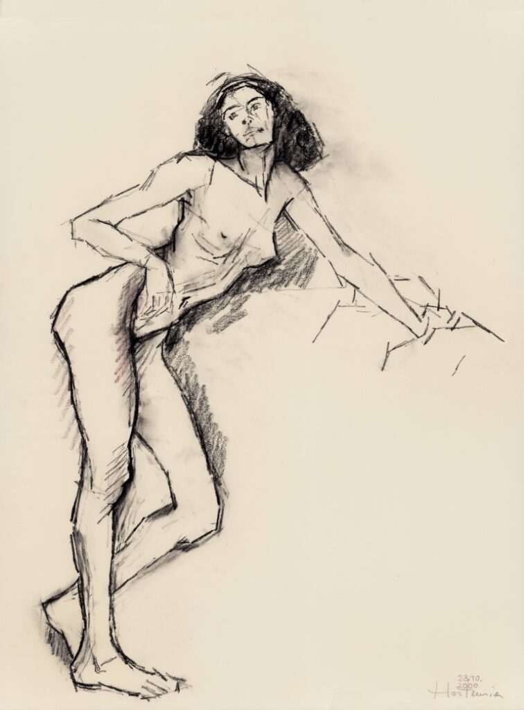 Das Œuvre der als Bildhauerin bekannten Künstlerin Hortensia umfasst auch ein umfangreiches graphisches Werk. Zeichnen ist für sie ein Mittel der Erkenntnis und Fundament künstlerischen Denkens.