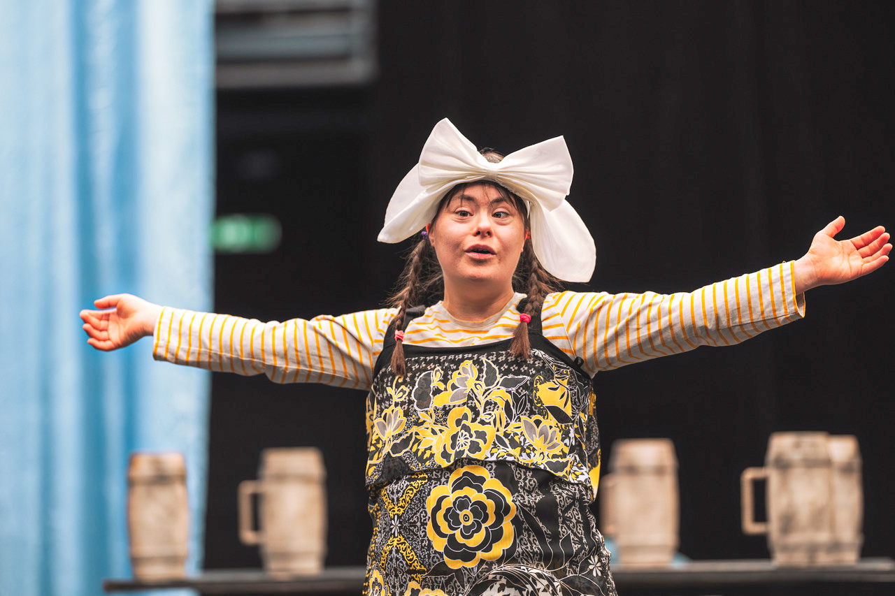 Es ist interessant, mit Menschen zu spielen, die keine Beeinträchtigungen haben. Das ist eine neue Welt für uns alle. Die Sängerinnen und Sänger von der Oper haben wunderschöne Stimmen, wow! Ich habe außerdem noch nie mit Orchester gesungen, das ist spannend. Und unseren Regisseur Georg Schütky liebe ich. Es ist so lustig, mit ihm zu arbeiten, auch wenn er immer etwas an den Texten verändert. Er ist ein richtiger kleiner Spitzbub!